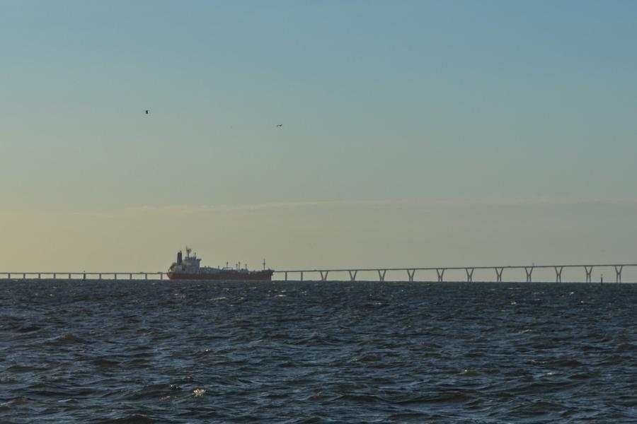 (카라카스=신화통신) 베네수엘라 서부 핵심 산유 지역인 마라카이보 호수에서 지난 23일 유조선이 출항을 기다리거나 라파엘 우르다네타 대교를 지나 바호 그란데 항구로 진입하는 모습이 포착됐다.