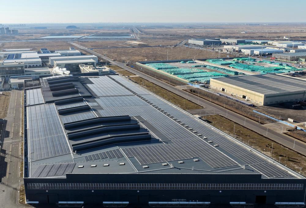 (중국 스자좡=신화통신) 최근 수년간 허베이(河北)성 탕산(唐山)시 하이항(海港)경제개발구는 기업들이 공장 지붕을 활용해 분산식 태양광 발전소를 설치하도록 유도했다. '자체 발전, 자체 사용, 잉여전력 전력망 연결' 모델로 생산∙운영에 청정 에너지를 활용함으로써 기업의 운영 비용을 절감하고 경제의 녹색·저탄소 발전에 기여하고 있다. 25일 탕산시 하이항경제개발구 입주기업 공장 지붕에 설치된 태양광 발전소를 드론으로 내려다봤다. 2025.12.26