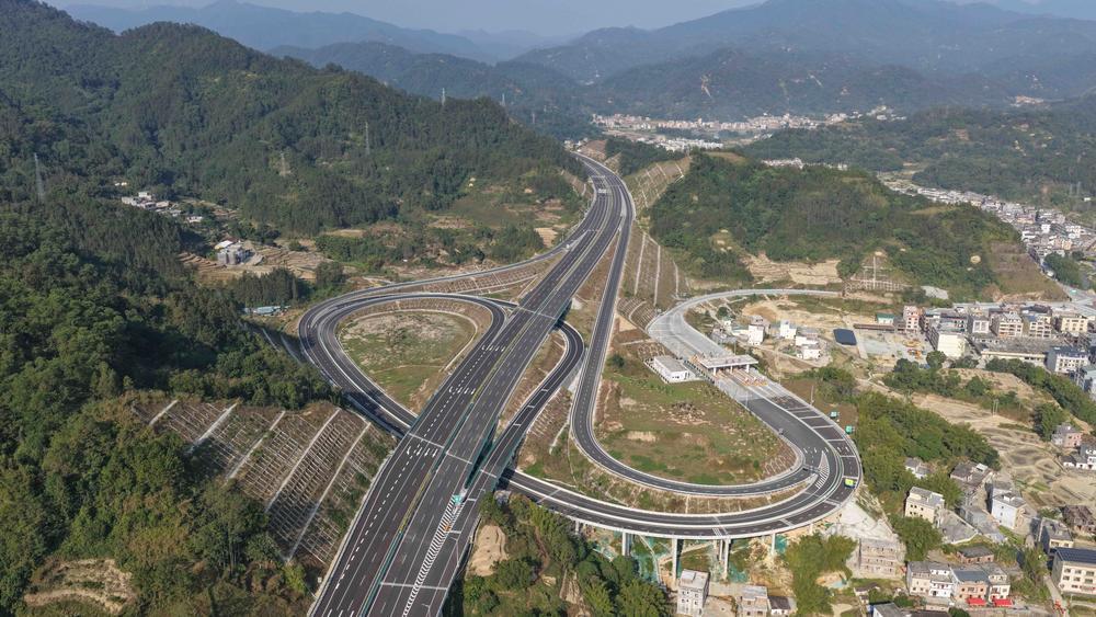 (중국 양춘=신화통신) 28일 이날 광둥(廣東)성 양춘(陽春)과 신이(信宜)를 잇는 양신(陽信)고속도로가 정식으로 개통됐다. 총 길이 약 142㎞의 양신고속도로 개통으로 두 지역 간 차량 이동시간이 70분, 신이에서 선전(深圳)까지는 3시간30분으로 단축돼 광둥성과 광시(廣西)를 잇는 중요한 교통 통로로 활용될 예정이다. 이날 양신고속도로를 양춘시에서 드론 사진에 담았다. 2025.12.28