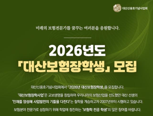 대산신용호기념사업회 관계자는 "급변하는 금융 환경 속에서도 보험 산업의 지속 성장을 이끌 인재 육성이 중요하다"며 "보험 산업의 미래를 설계할 우수한 학생들의 많은 지원을 바란다"고 말했다.
